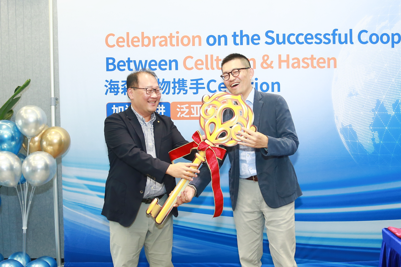 To acknowledge the project members of both parties for their unremitting efforts during the transaction, Hasten invited Celltrion delegation and project team members to jointly celebrate on the achievement of this milestone. During the ceremony, Celltrion representative handed over to Hasten the “key of success” symbolizing that two companies’ shared vision of providing healthcare solutions for patients will be continued. Leaders from two parties also toasted for the milestone and win-win result.